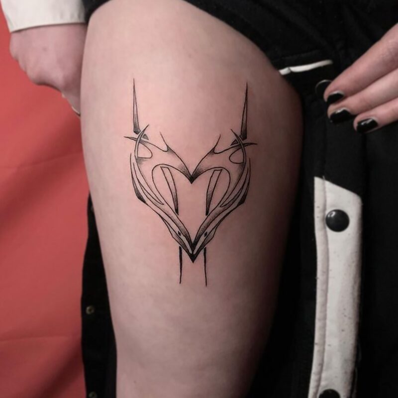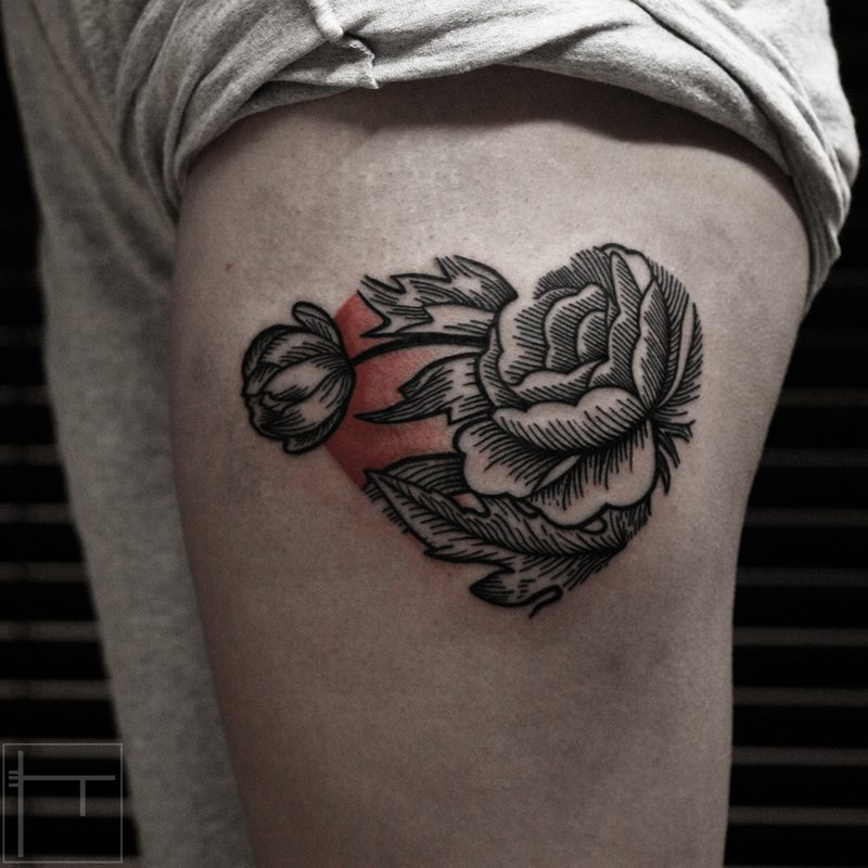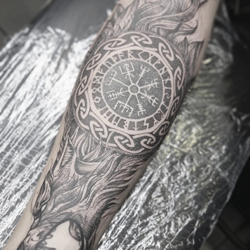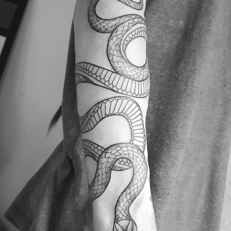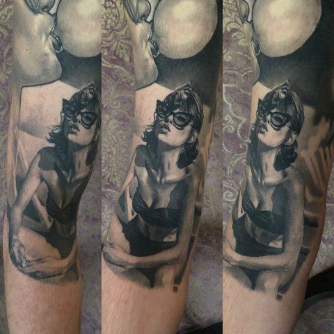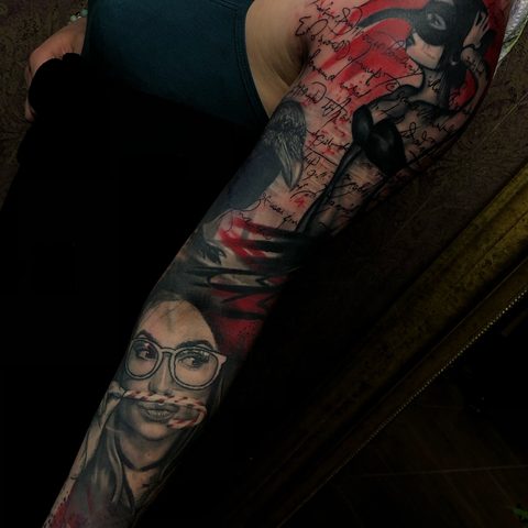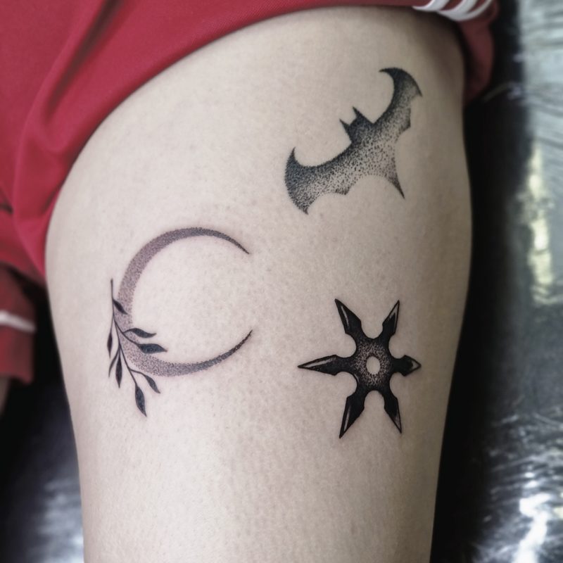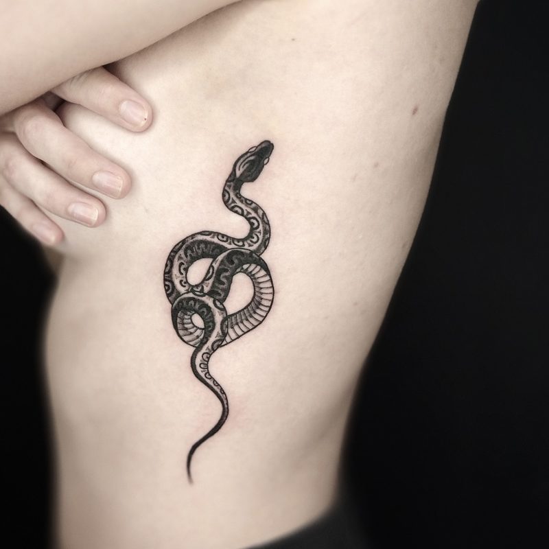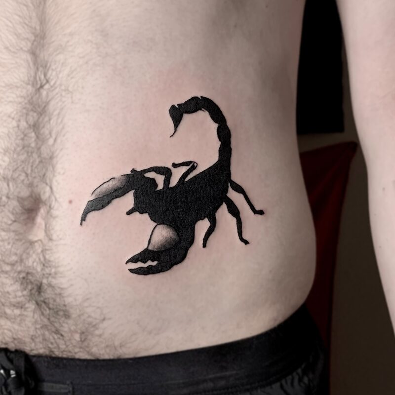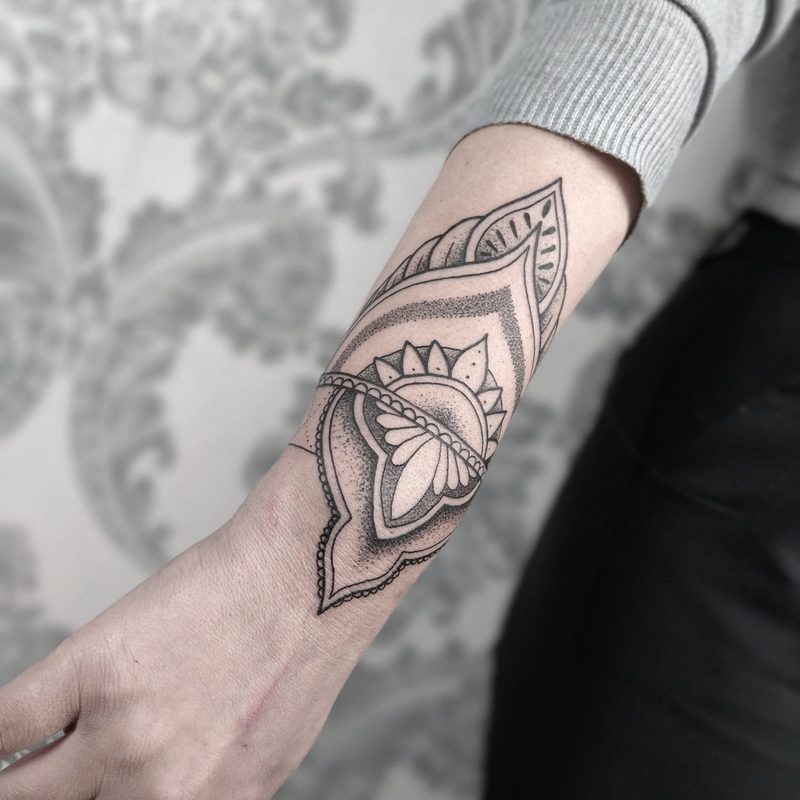 I am mainly interested in blackwork. My pieces consists of heavy block shading, incomplete and staggered outlines and stark contrasts where I emphasize the skin as the highlight. I love doing custom pieces, but also dedicate a lot of time to making new flash. I always try to make my flash as unique as possible, whether it's a rework of a traditional design or a concept of my own.