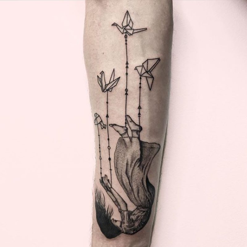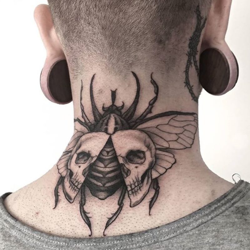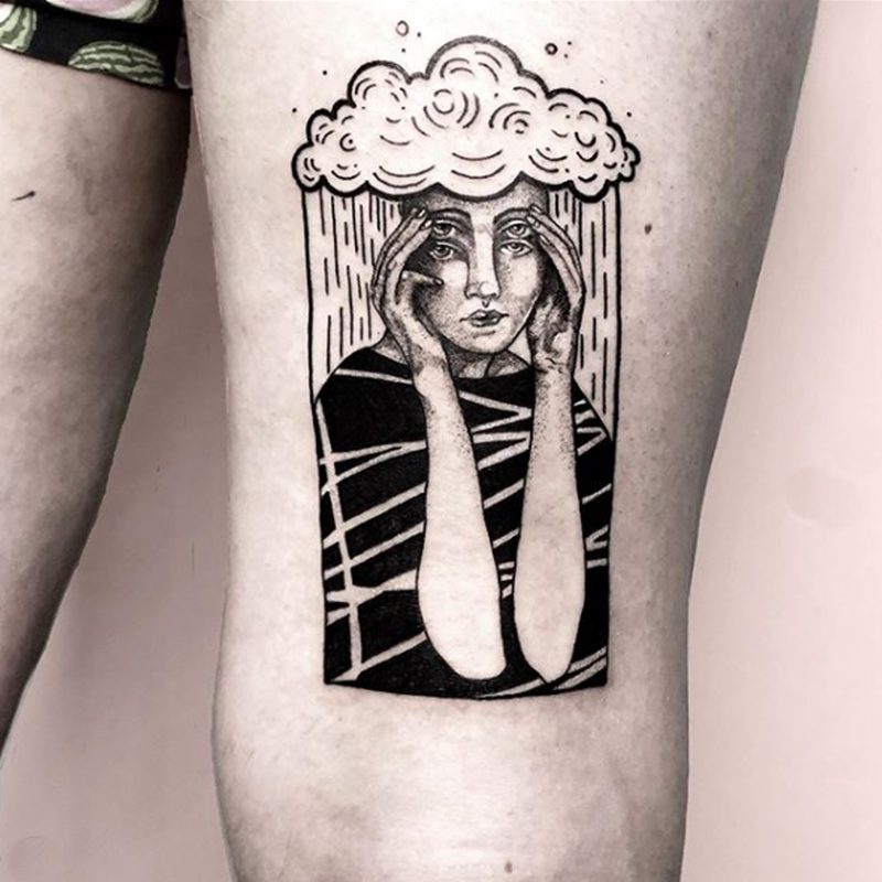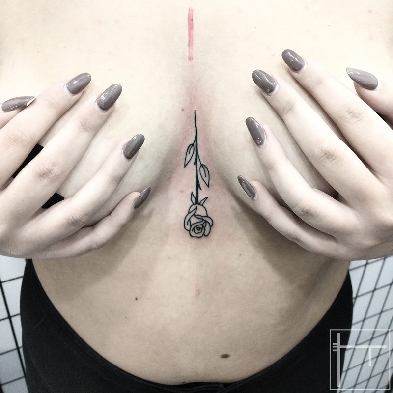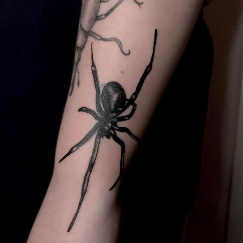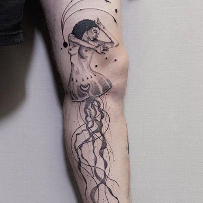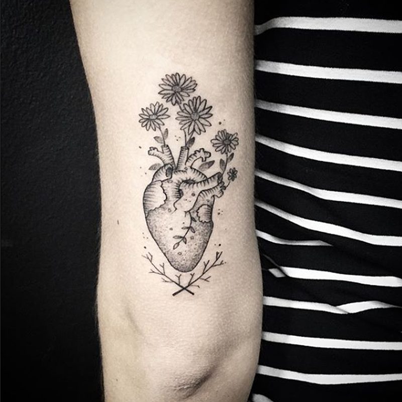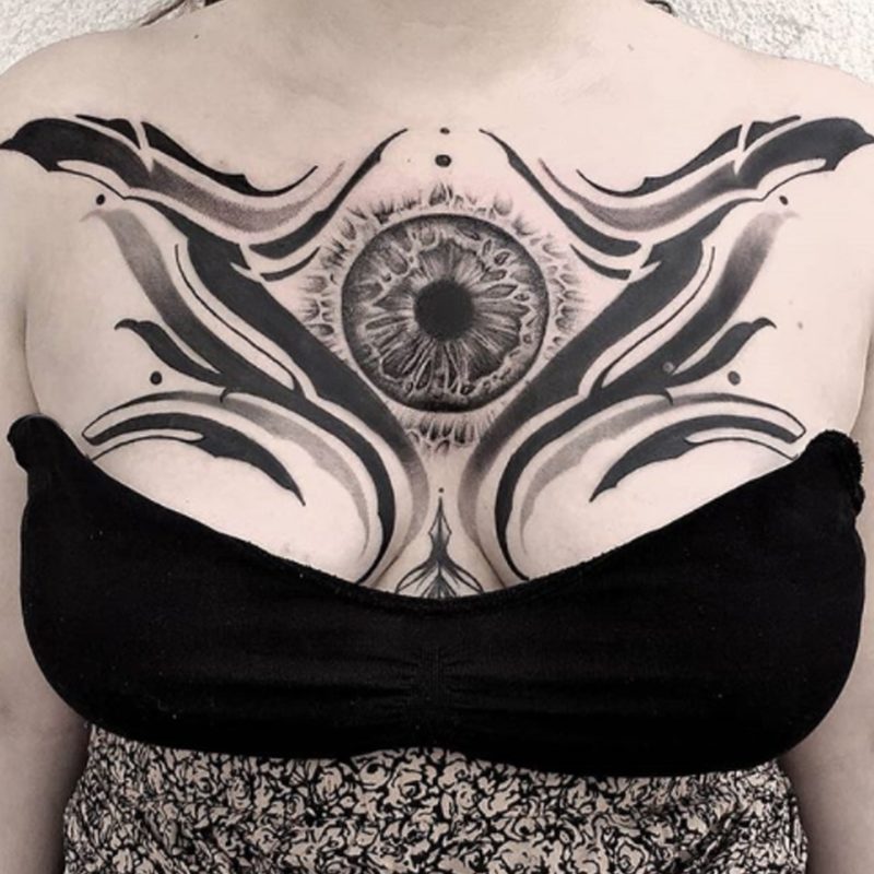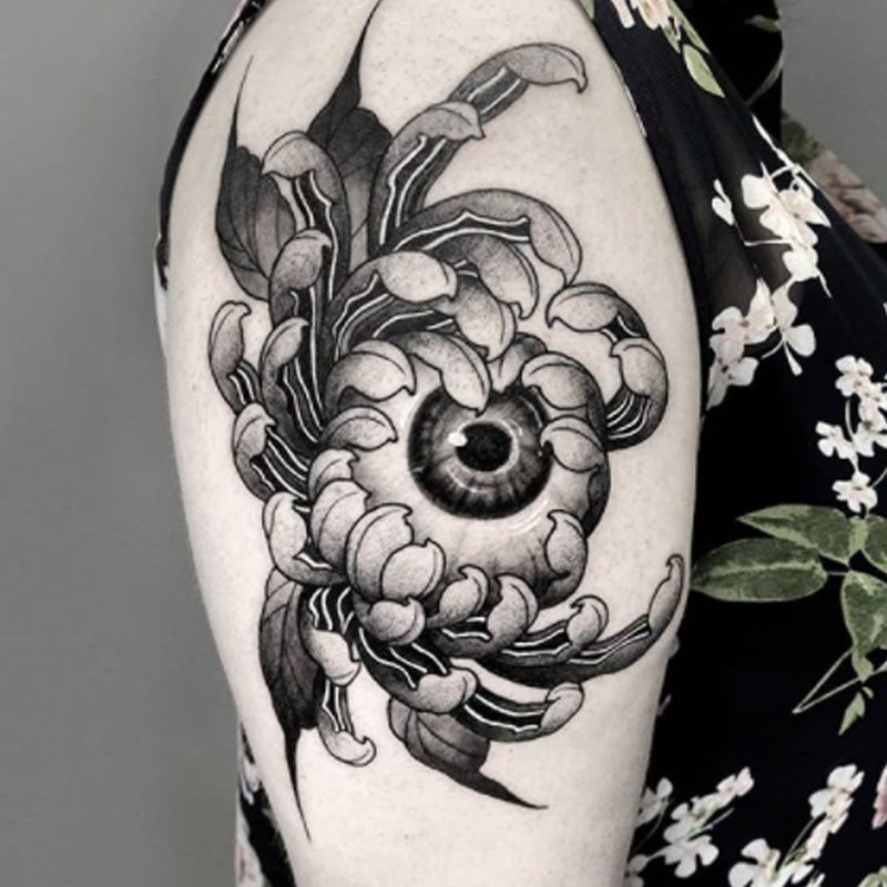 I am mainly interested in blackwork. My pieces consists of heavy block shading, incomplete and staggered outlines and stark contrasts where I emphasize the skin as the highlight. I love doing custom pieces, but also dedicate a lot of time to making new flash. I always try to make my flash as unique as possible, whether it's a rework of a traditional design or a concept of my own.